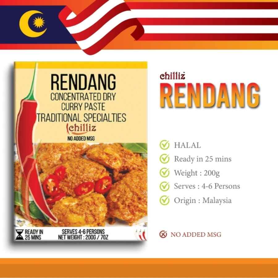 CHILIZ-DRYCURRYPASTE-RENDANG-200GDiscover the rich, aromatic flavors of Malaysian cuisine with Chilliz Dry Curry Paste. This authentic Rendang paste is expertly crafted to elevate your dishes, making it a perfect base for a hearty meal that impresses.