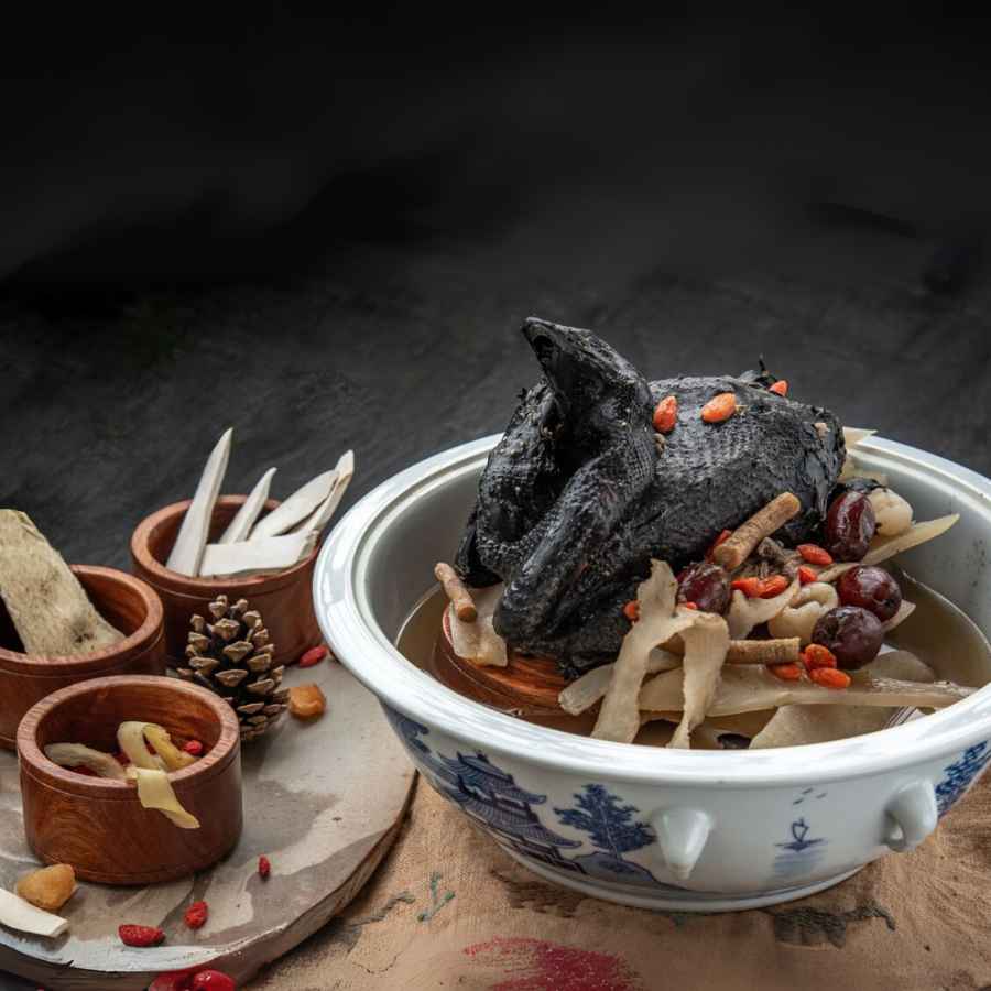 Chinese yam, goji berries, red dates, lotus seeds, codonopsis root, angelica root, longan, ginger, licorice root, and premium herbal blend.