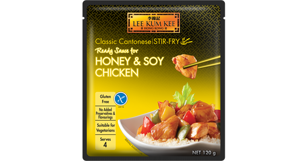 LKK-RDY-SCE-HONEY-SOY-CHICKEN-GF-120GLee Kum Kee’s Ready Sauce for Honey & Soy Chicken is a convenient, flavorful blend of soy sauce and honey (12%), delivering a classic sweet and savoury taste. Perfect for stir-frying all types of meat or for making deliciously sticky and tasty spare ribs, this sauce simplifies meal preparation while ensuring authentic flavor. It is gluten-free and contains no added preservatives, making it suitable for vegetarians